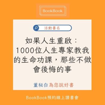 【線上直播】如果人生重啟:1000位人生專家教我的生命功課,那些不做會後悔的事