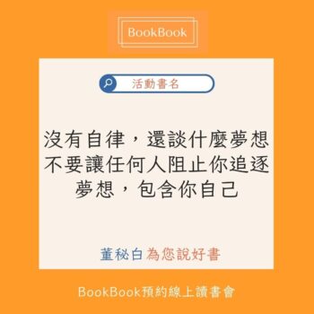 【線上直播】沒有自律,還談什麼夢想:不要讓任何人阻止你追逐夢想,包含你自己