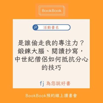 【線上直播】是誰偷走我的專注力?:鍛鍊大腦、閱讀抄寫,中世紀僧侶如何抵抗分心的技巧