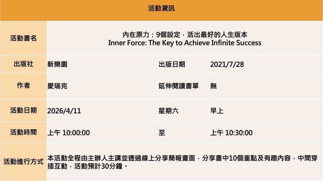 【線上直播】內在原力:9個設定,活出最好的人生版本