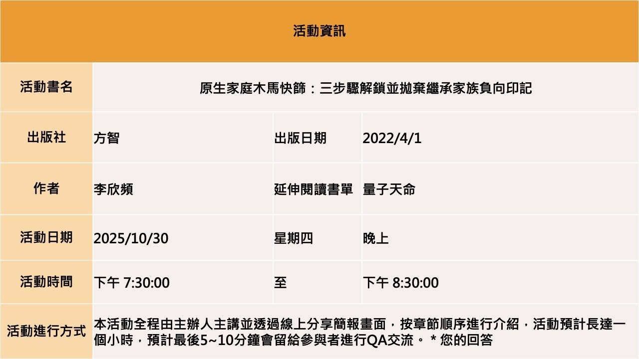 【線上直播】原生家庭木馬快篩:三步驟解鎖並拋棄繼承家族負向印記