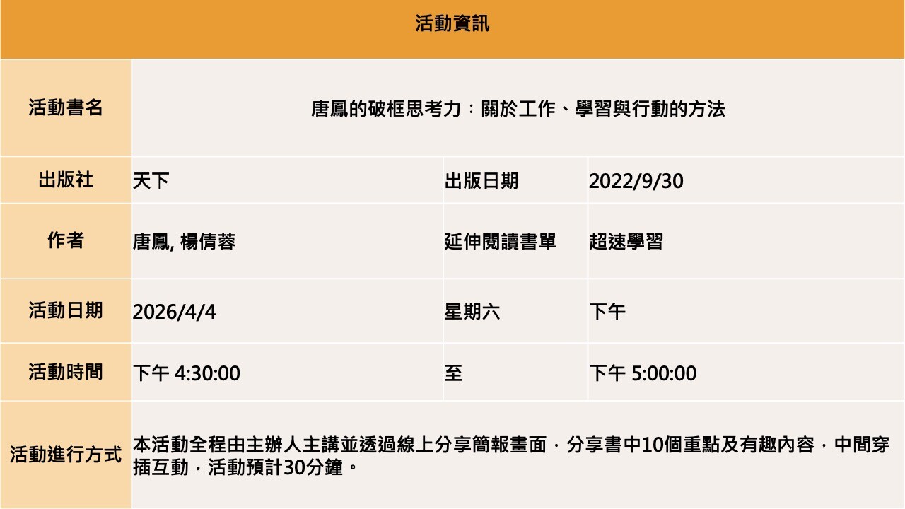 【線上直播】唐鳳的破框思考力 : 關於工作、學習與行動的方法