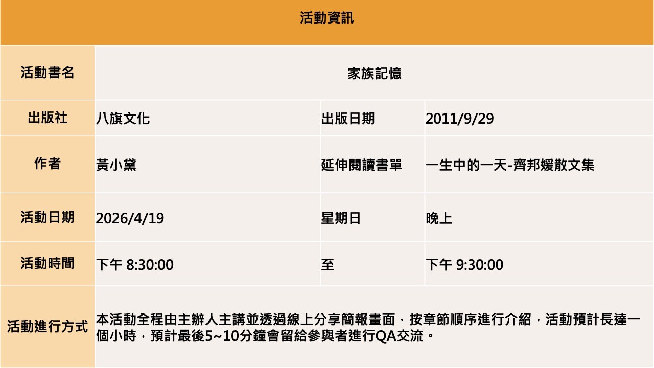 【線上直播】家族記憶