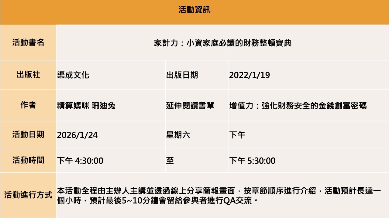 【線上直播】家計力:小資家庭必讀的財務整頓寶典