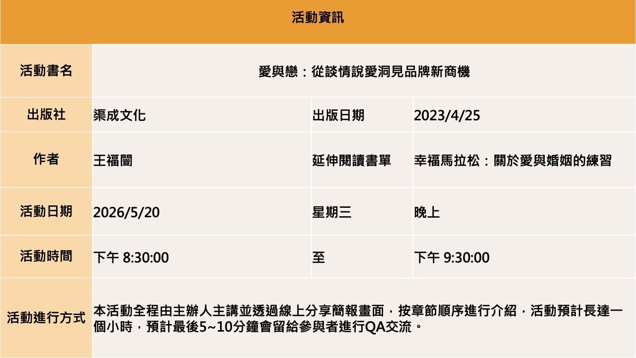 【線上直播】愛與戀:從談情說愛洞見品牌新商機