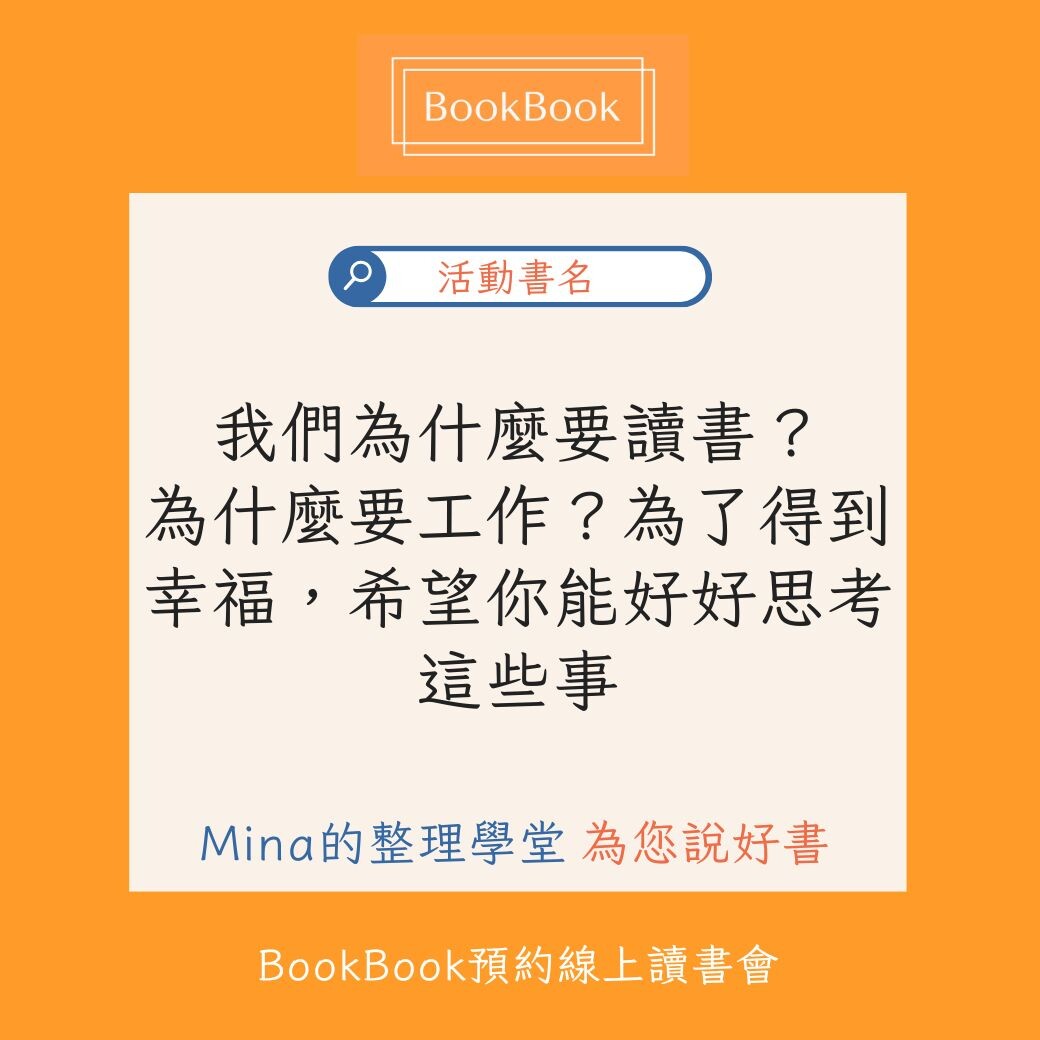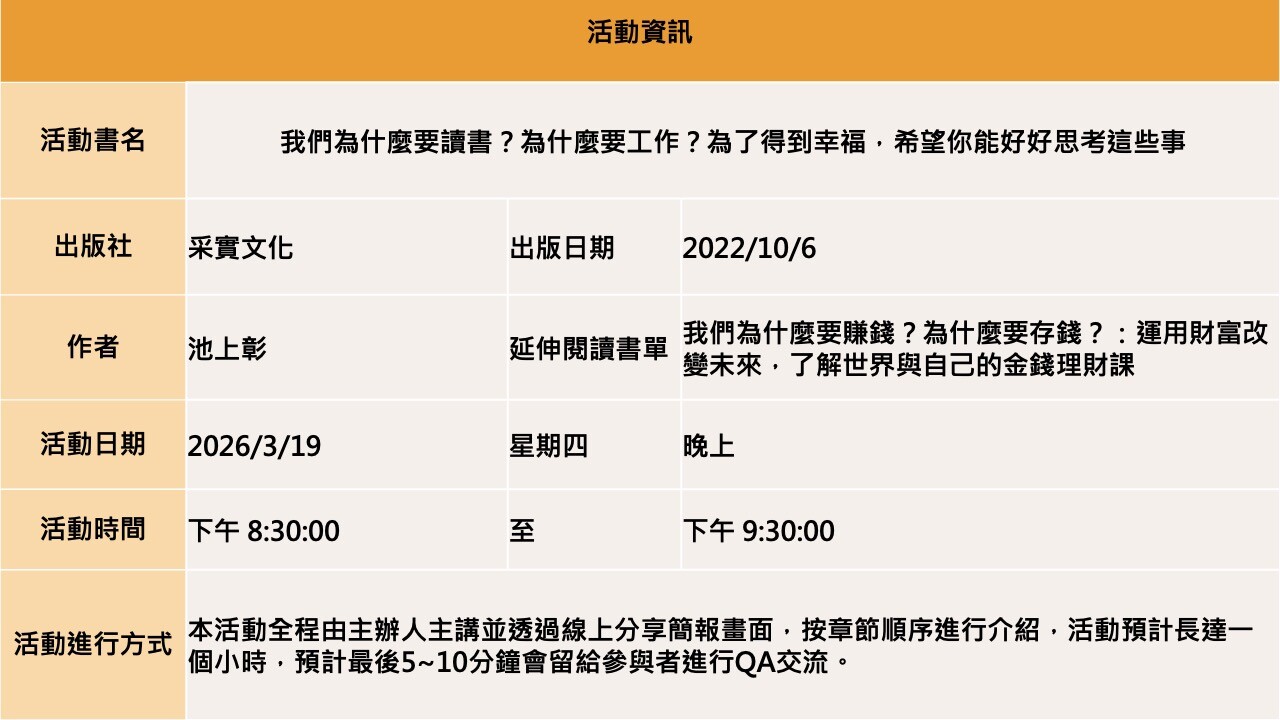 【線上直播】我們為什麼要讀書?為什麼要工作?為了得到幸福,希望你能好好思考這些事