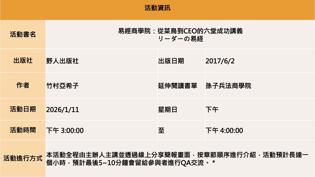 【線上直播】易經商學院:從菜鳥到CEO的六堂成功講義