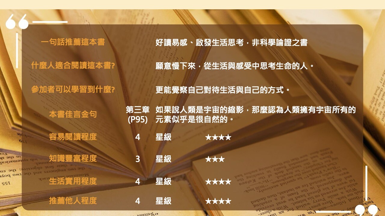 • 基於個人隱私考量,報名者如不願公開肖像與個人資料,可於活動中選擇不開啟畫面鏡頭或以暱稱取代真實姓名以為因應,但不得以拒絕主辦者錄音、錄影與檔案留存為由禁止、干預或阻撓主辦者執行,如參加者不同意配合者請勿報名本活動;已報名者,如因拒絕配合而退出活動或取消出席,本平台恕不提供任何退費與賠償,感謝您的配合。