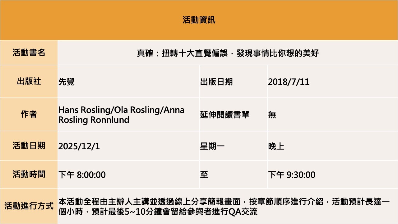 【線上直播】真確:扭轉十大直覺偏誤,發現事情比你想的美好