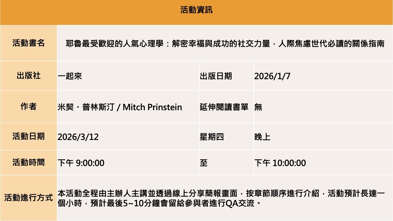 【線上直播】耶魯最受歡迎的人氣心理學:解密幸福與成功的社交力量,人際焦慮世代必讀的關係指南