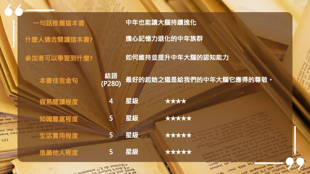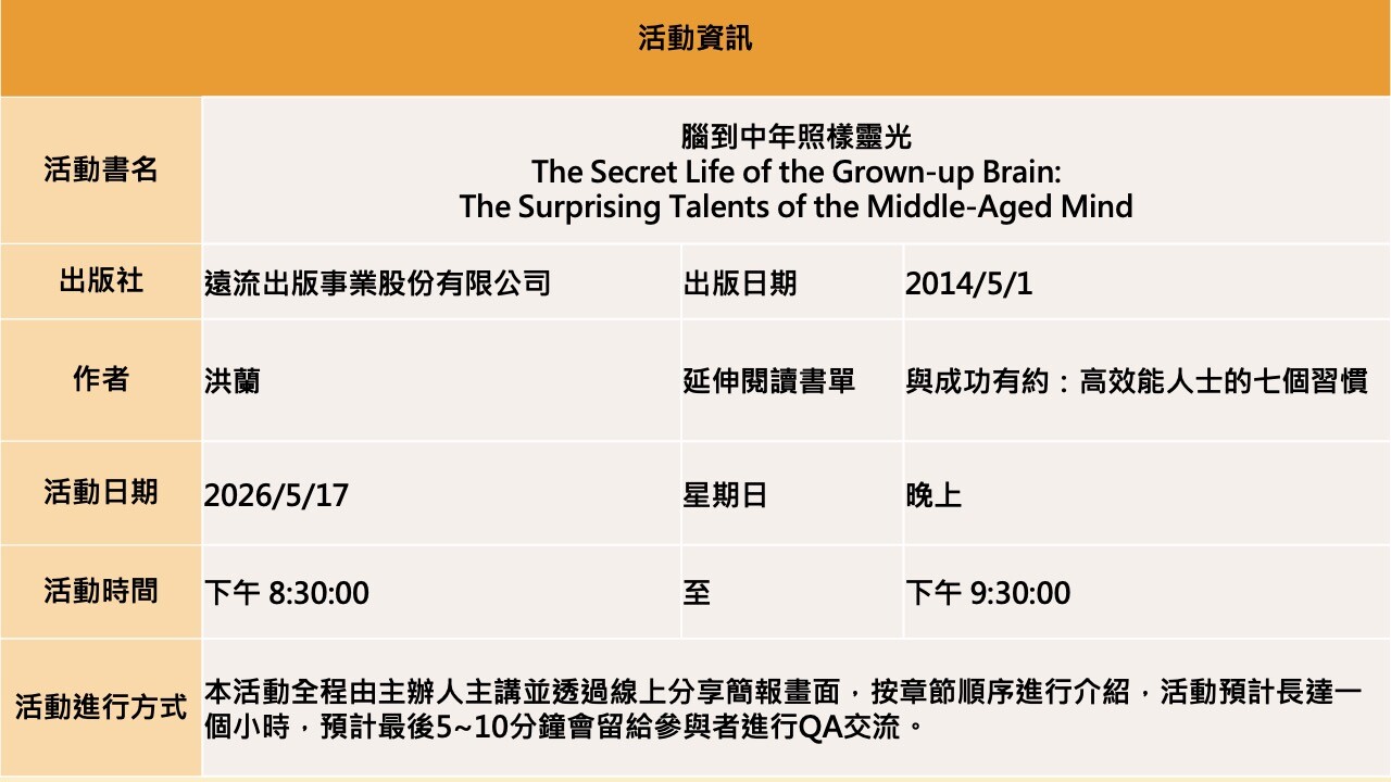 【線上直播】腦到中年照樣靈光