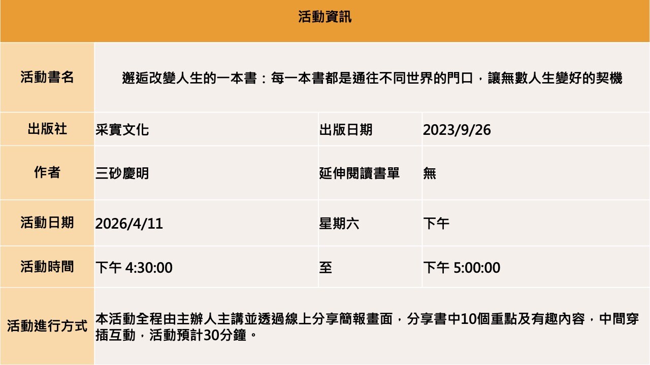 【線上直播】邂逅改變人生的一本書:每一本書都是通往不同世界的門口,讓無數人生變好的契機